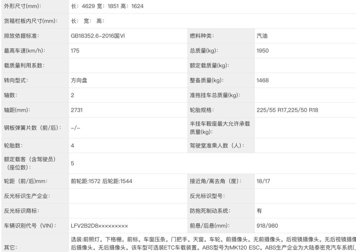 车身尺寸方面, 长宽高分别是4629、1851、1624mm, 轴距2731mm. 这个数据一看就知道,妥妥的就是大众探岳的底子 . 侧面线条倒是做了不少改动, 取消了那些硬朗的腰线, 整体看上去更圆润一些.